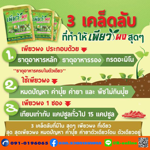 เพียวผง..ในซองประกอบไปด้วย ธาตุอาหารหลัก ธาตุอาหารรอง จุลธาตุอาหาร และกรดอะมิโน ครบในตัวเดียว